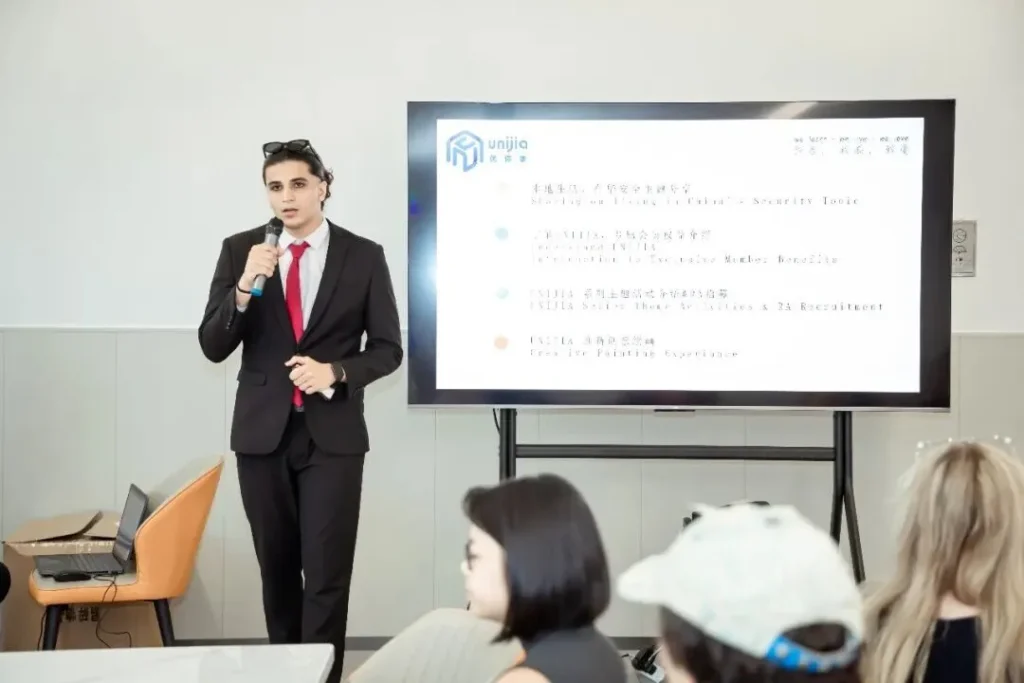 Shortly after, Jimmy, our “warm-hearted partner” from UNIJIA, gave everyone a detailed introduction to the UNIJIA International Youth Community. Centering on three core themes—diverse cultural experiences, international youth development, and public welfare & environmental sustainability—she not only vividly explained the community’s concepts and distinctive features, but also unveiled the wonderful activity plans for the second half of the year.