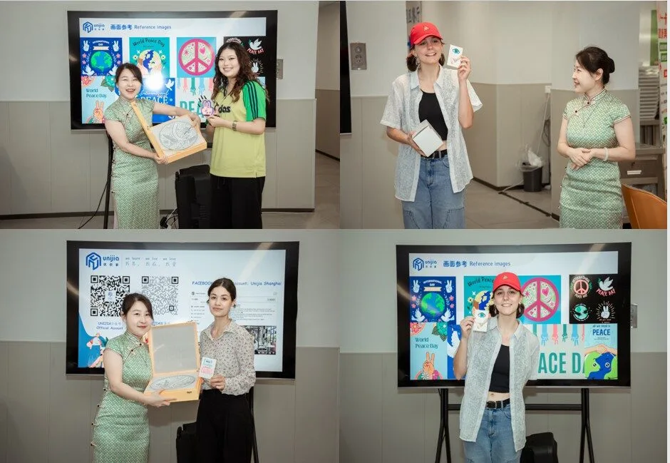 Next, the students embarked on a painting project centered on the theme of “World Peace”. Some depicted the flags of various countries intertwined to illustrate the unity among nations; others painted doves of peace with outstretched wings flying across the canvas, conveying hope that transcends national borders; still others portrayed hands of different skin colors clasped tightly together, freezing the warm moment of human harmony. With colors, they laid out their aspirations, and with lines, they outlined their hopes. As these paintings took shape under their brushes, the sight of young people from different countries and regions gathering together to create was in itself the most vivid testament to “World Peace”.